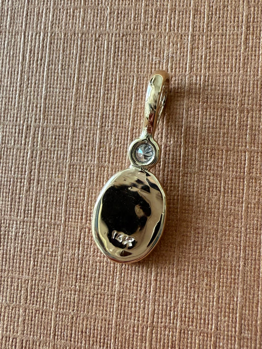 14k Solid Yellow Gold, White Moonstone, White Diamond “Sun” Pendant, Small Size