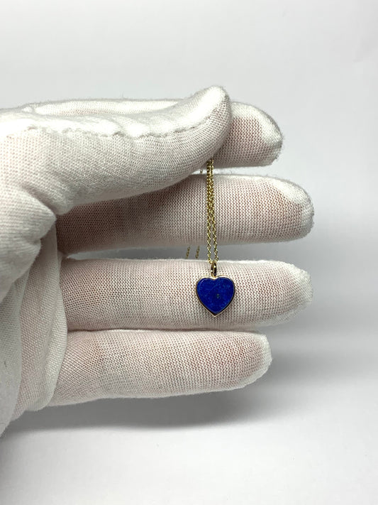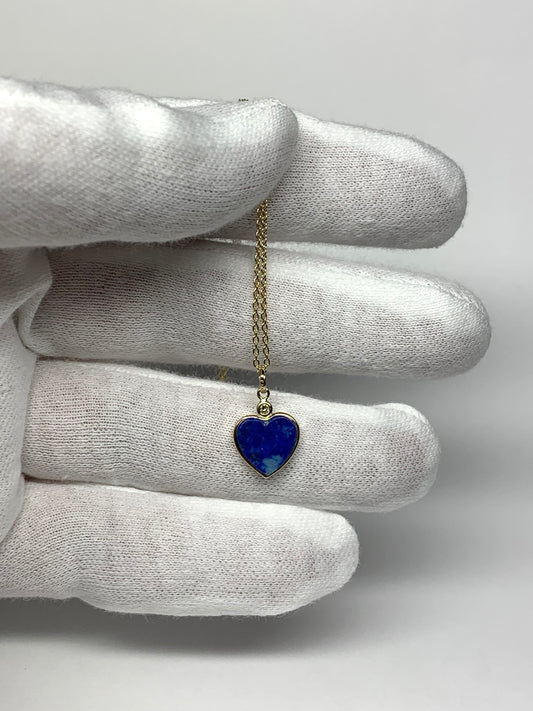 14k Solid Yellow Gold, Blue Lapis Lazuli “Heart” Mini Pendant