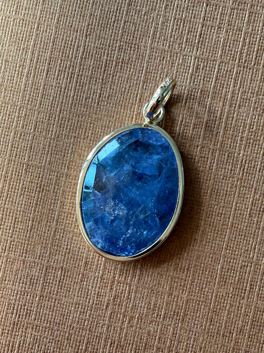 14k Solid Yellow Gold, Blue Tanzanite Pendant, Small Size