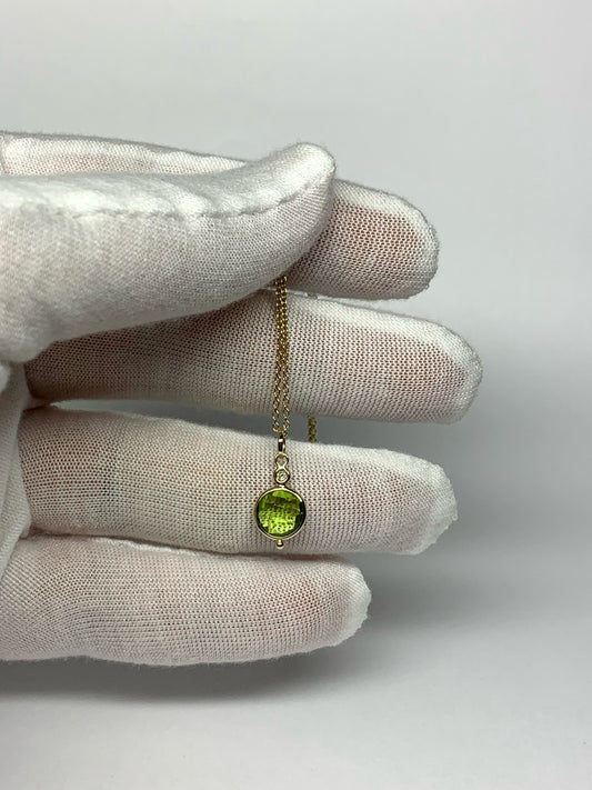 14k Solid Yellow Gold, Diamond, Green Peridot Mini Pendant