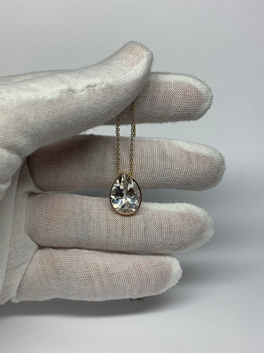 14k Solid Yellow Gold, Clear Quartz Slider Pendant, Pear Shaped