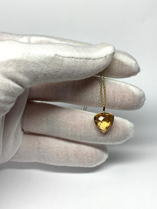 14k Solid Yellow Gold, Citrine Trillium Pendant, Small Size