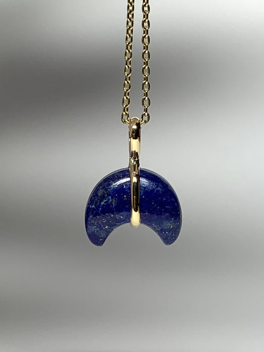 14k Solid Yellow Gold, Blue Lapis Lazuli “Crescent Moon” Pendant, Mini Size