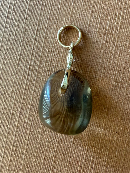 14k Solid Yellow Gold, Diamond, Lemon Quartz Tumbled Nugget Bead Pendant, Mini Size