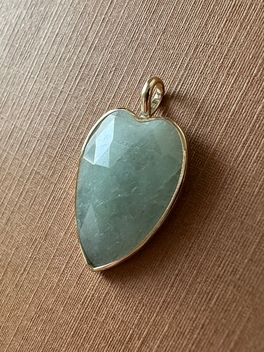 14k Solid Yellow Gold, Pale Blue Aquamarine “Heart” Pendant