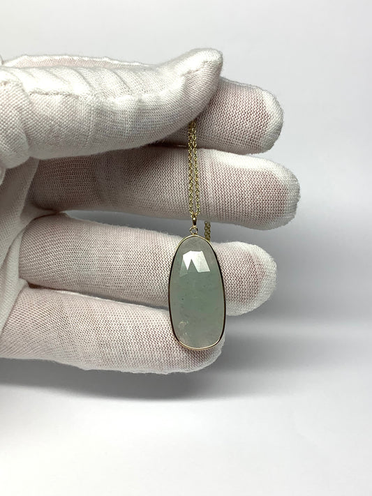 14k Solid Yellow Gold, Opaque Aquamarine Pendant