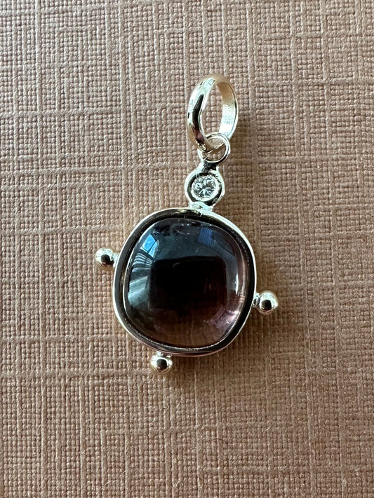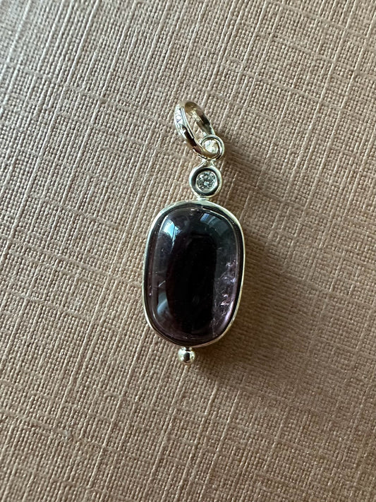 14k Solid Yellow Gold, Natural White Diamond, Natural Pink Tourmaline Mini Pendant