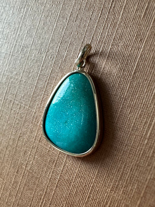 14k Solid Yellow Gold, Natural Turquoise Nugget Bead Pendant