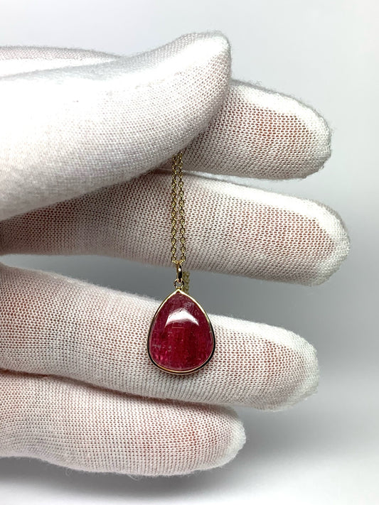 14k Solid Yellow Gold, Natural Pink Tourmaline Pendant