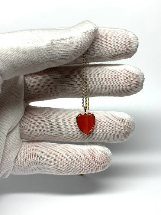 14K Solid Yellow Gold, Red Carnelian "Heart" Pendant, Mini Size