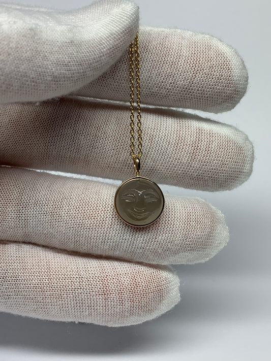 14K Solid Yellow Gold, Grey Moonstone "Moon" Pendant, Small Size