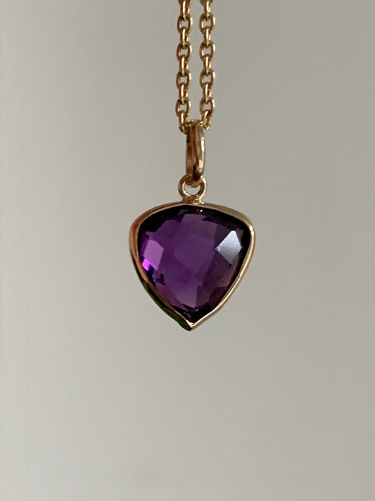14k Solid Yellow Gold, Purple Amethyst Trillium Mini Pendant