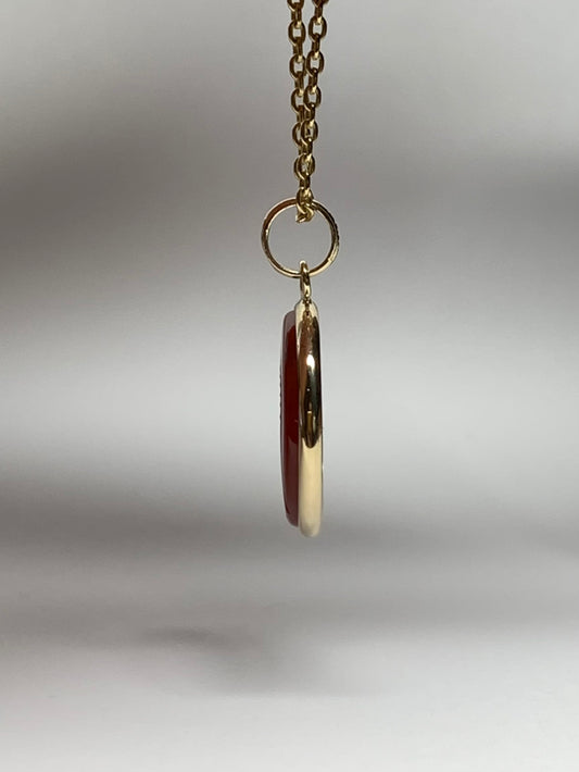 14K Solid Yellow Gold, Red Onyx "Roman Soldier" Intaglio Pendant, Red Carnelian