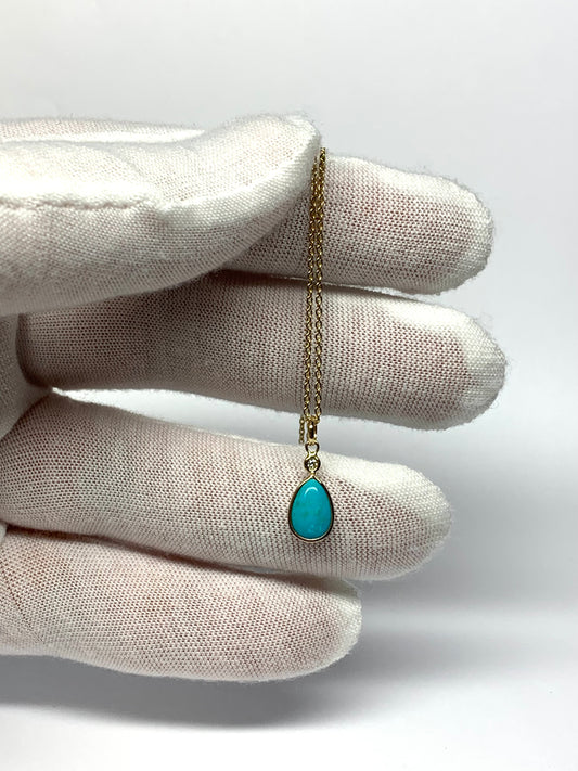 14k Solid Yellow Gold, Diamond, Sleeping Beauty Turquoise Tiny Pendant