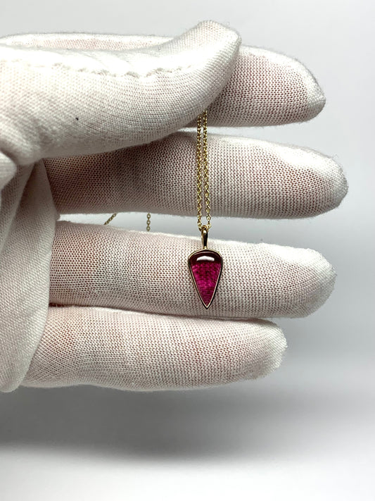 14k Solid Yellow Gold, Natural Dark Pink Tourmaline “Arrowhead” Pendant, Mini Size