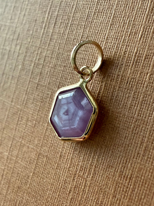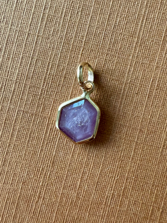 14k Solid Yellow Gold, Natural Pink Opaque Sapphire Hexagon Pendant, Tiny Size