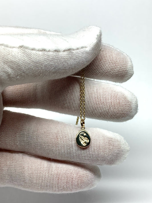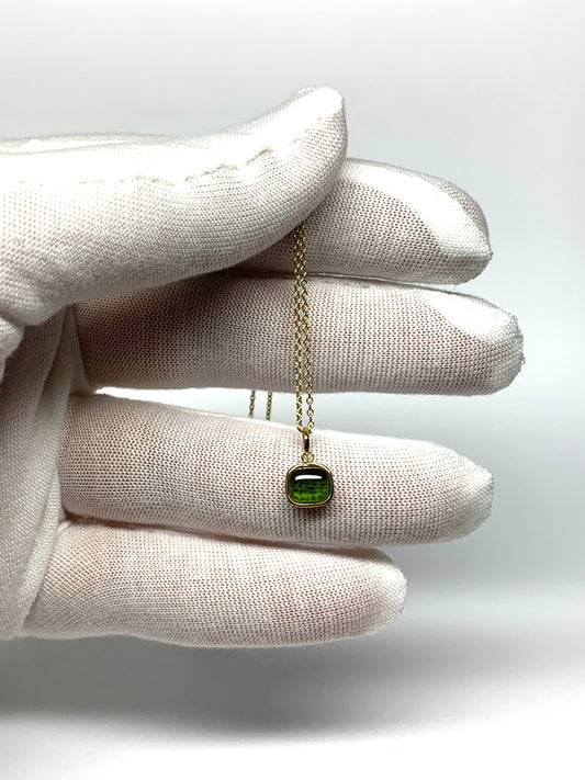 14k Solid Yellow Gold, Natural Green Tourmaline Cabochon Tiny Pendant