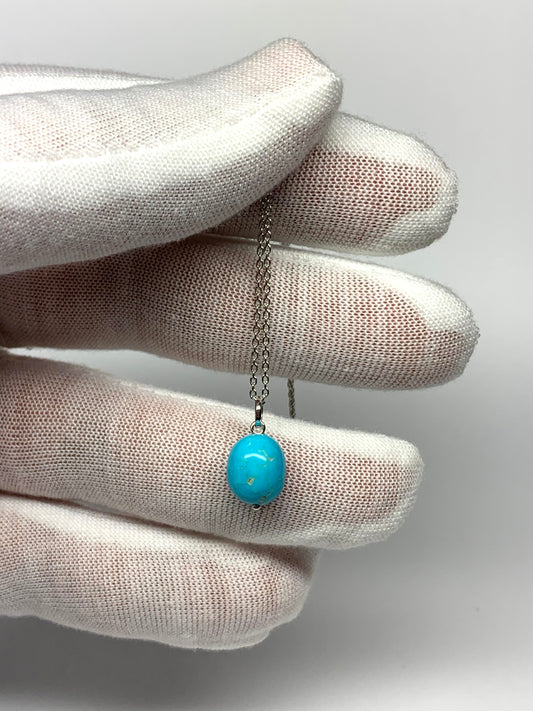14k Solid White Gold, Natural Turquoise Nugget Bead Pendant