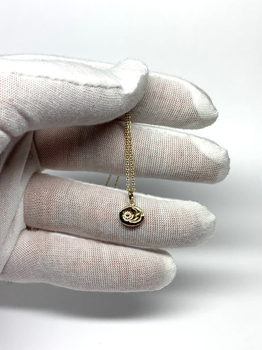 14K Solid Yellow Gold Nugget “Sun and Moon” Mini Pendant, Tiny Charm