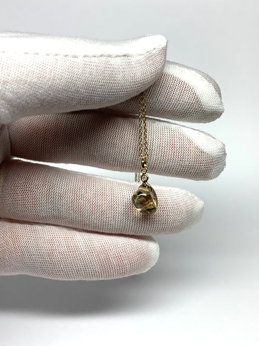 14k Solid Yellow Gold, Diamond, Lemon Quartz Tumbled Nugget Bead Pendant, Mini Size