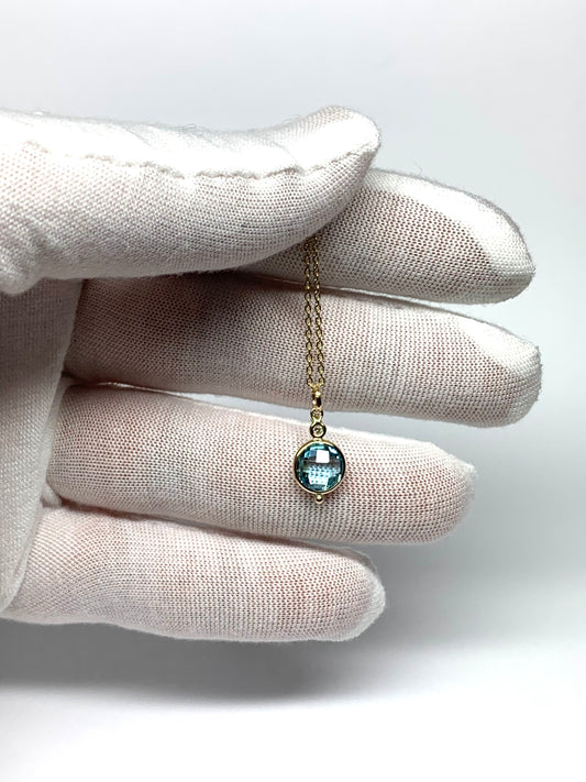 14K Solid Yellow Gold, Diamond, Blue Topaz Mini Pendant