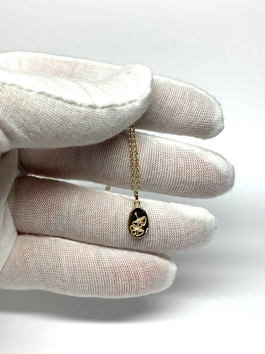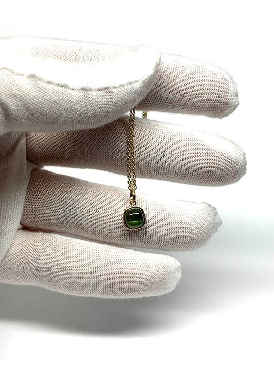 14k Solid Yellow Gold, Natural Green Tourmaline Cabochon Tiny Pendant