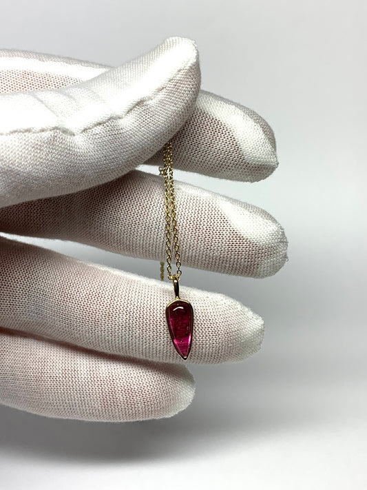 14k Solid Yellow Gold, Natural Dark Pink Tourmaline “Arrowhead” Pendant, Mini Size