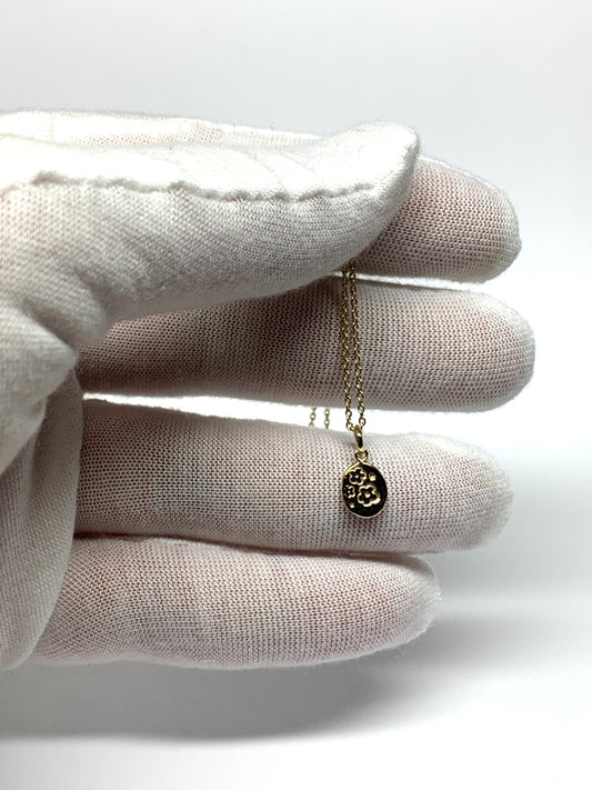 14K Solid Yellow Gold Nugget “Flowers” Mini Pendant, Tiny Charm