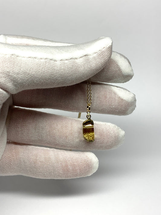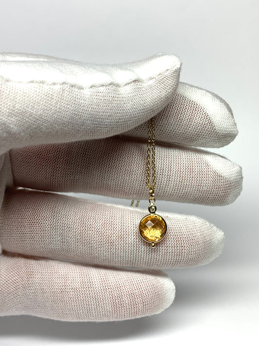 14K Solid Yellow Gold, Diamond, Citrine Mini Pendant