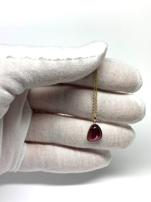 14k Solid Yellow Gold, Natural Pink Tourmaline Mini Pendant