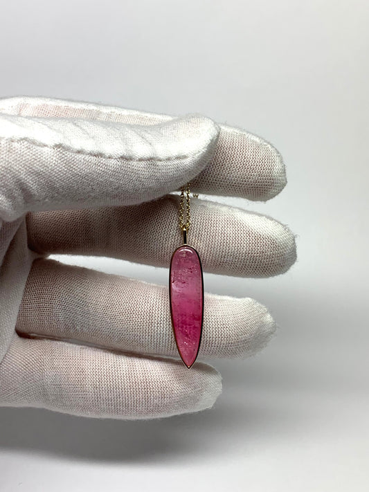 14k Solid Yellow Gold, Natural Pink Tourmaline “Arrowhead” Pendant