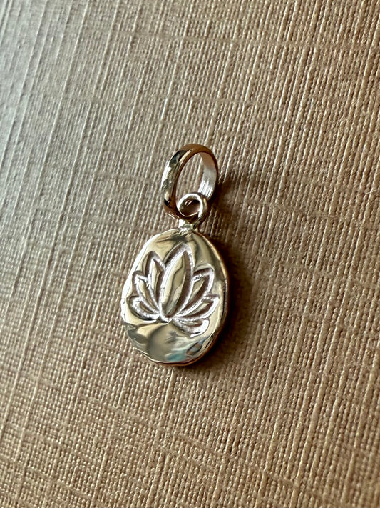 14K Solid Rose Gold Nugget “Lotus” Mini Pendant, Tiny Charm