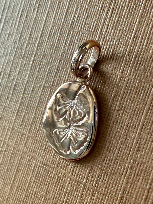 14K Solid Rose Gold Nugget “Ginkgo” Mini Pendant, Tiny Charm