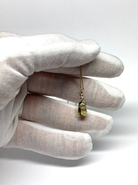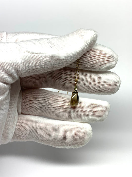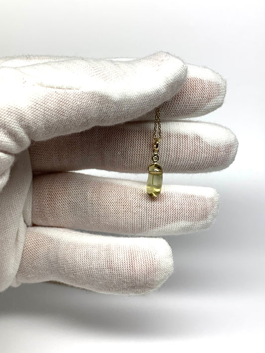 14k Solid Yellow Gold, Diamond, Lemon Quartz Tumbled Nugget Bead Pendant, Mini Size