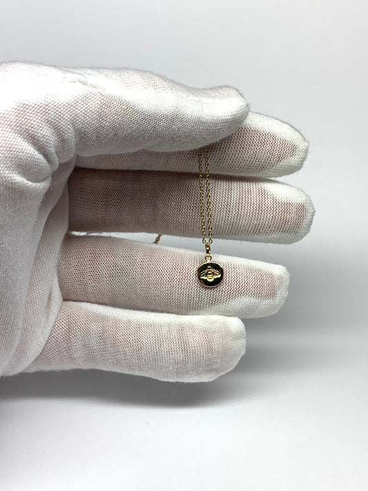 14k Solid Yellow Gold Nugget Mini Pendant “Honey Bee”, Tiny Charm