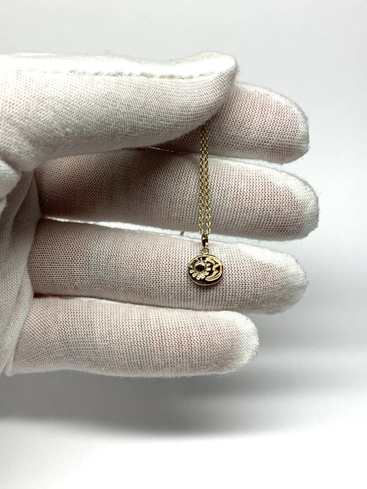 14K Solid Yellow Gold Nugget “Sun and Moon” Mini Pendant, Tiny Charm