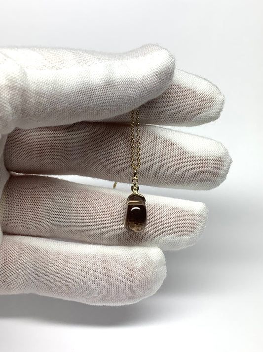 14k Solid Yellow Gold, Diamond, Dark Smoky Quartz Tumbled Nugget Bead Pendant, Mini Size