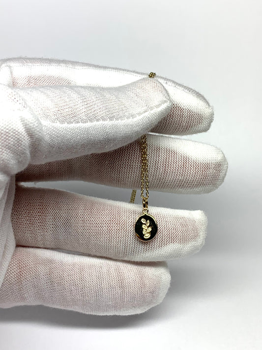 14k Solid Yellow Gold Nugget “Olive Branch”, Mini Pendant, Tiny Charm