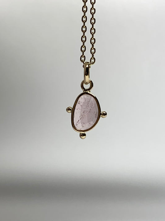 14k Solid Yellow Gold, Natural Pink Tourmaline Pendant, Gold Dots