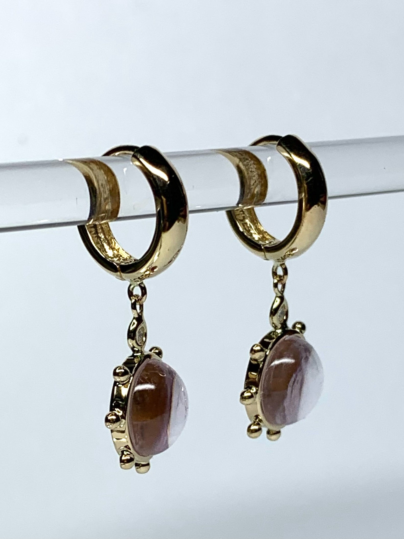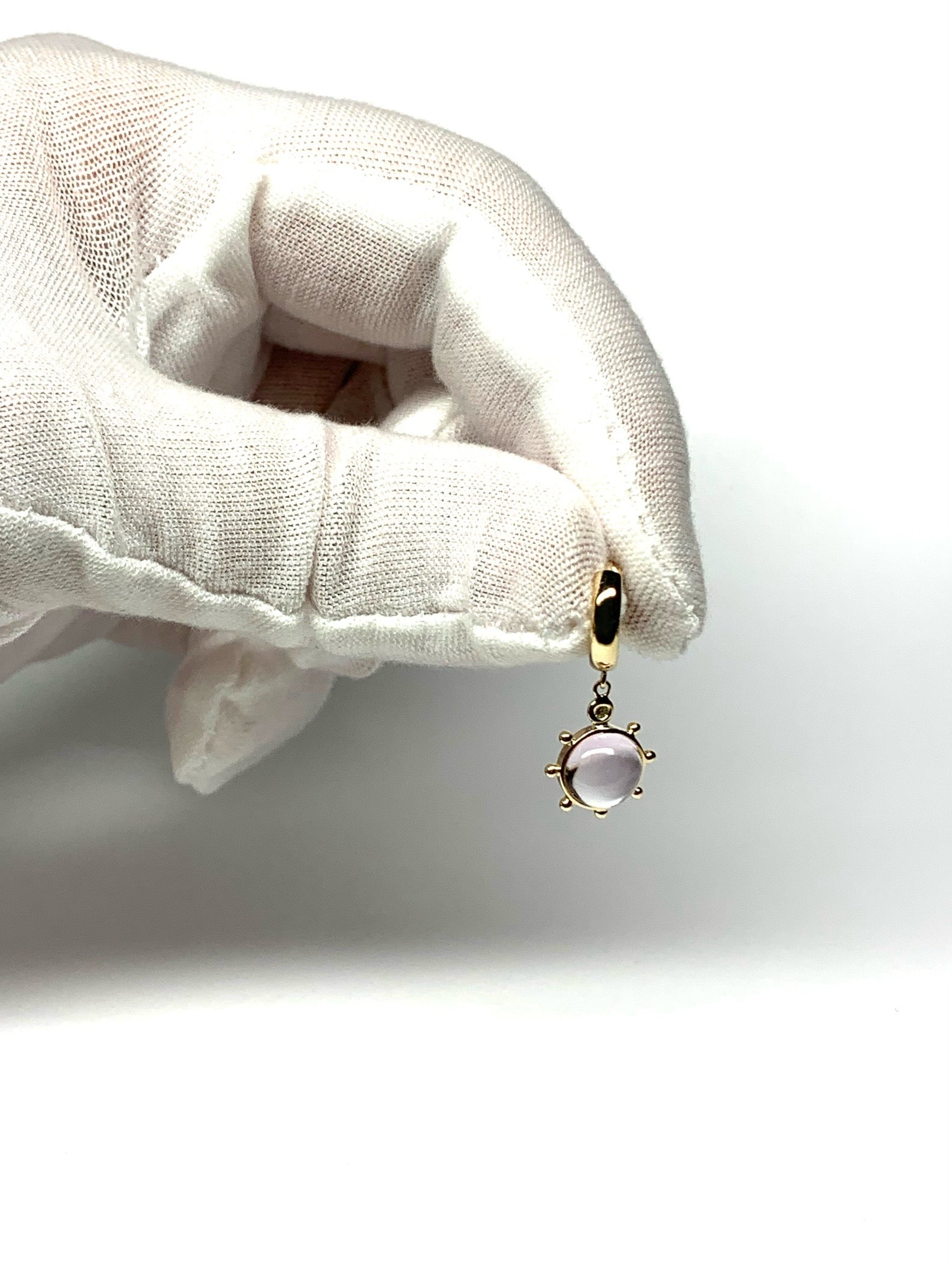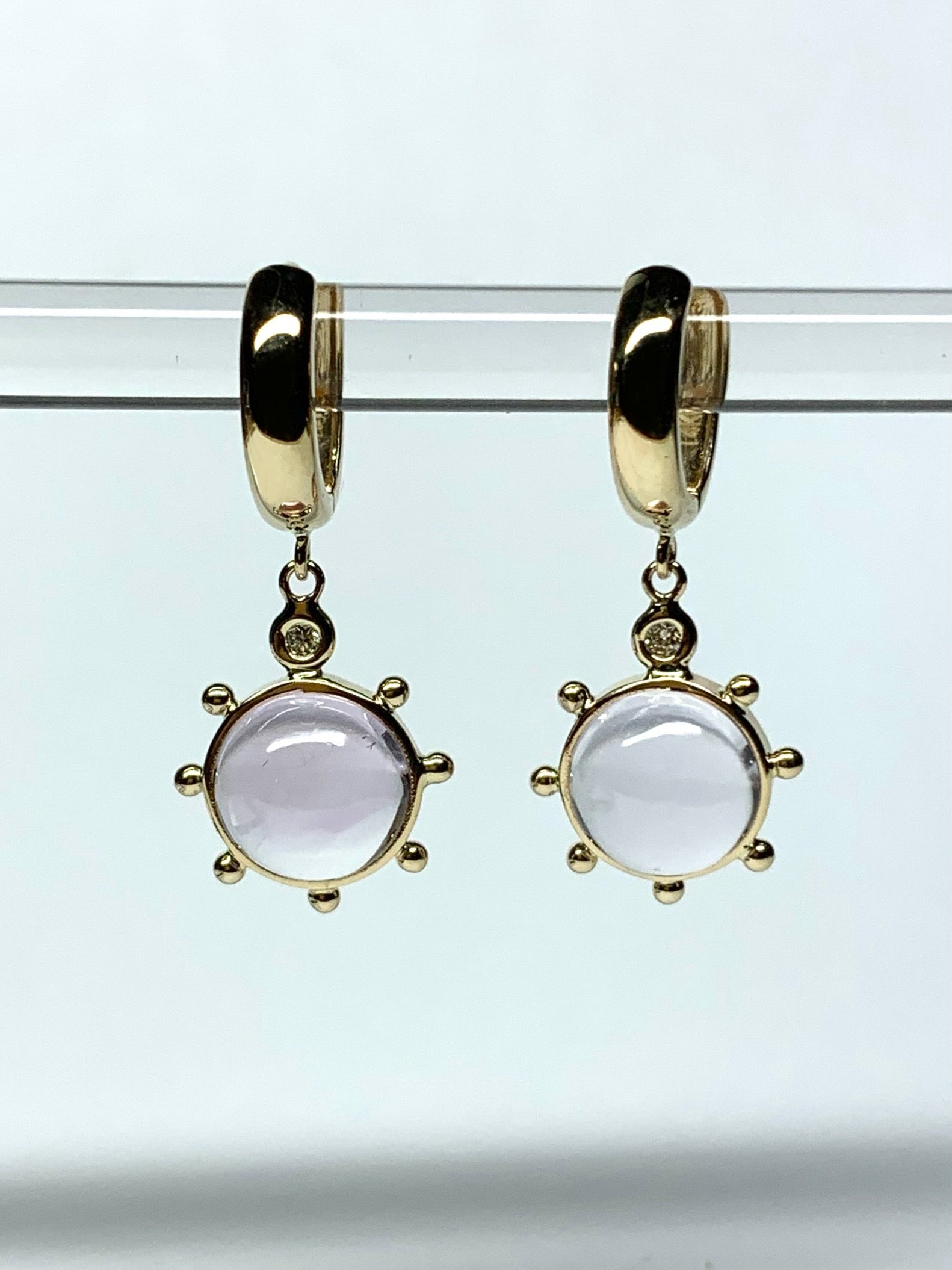 14k Solid Yellow Gold, Diamonds, Pale Pink Amethyst “Sun” Mini Earrings
