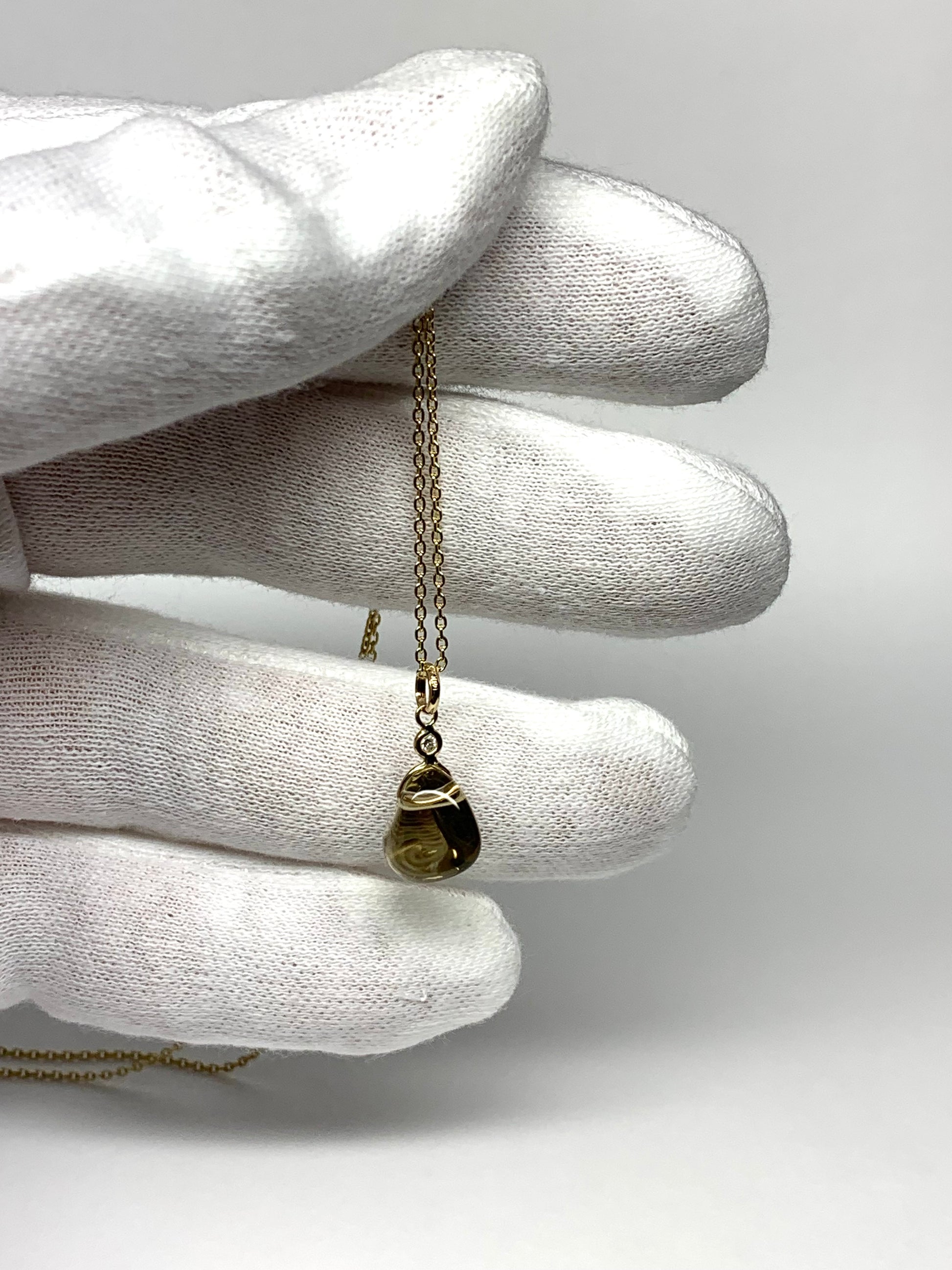 14k Solid Yellow Gold, Diamond, Lemon Quartz Tumbled Nugget Bead Pendant, Mini Size