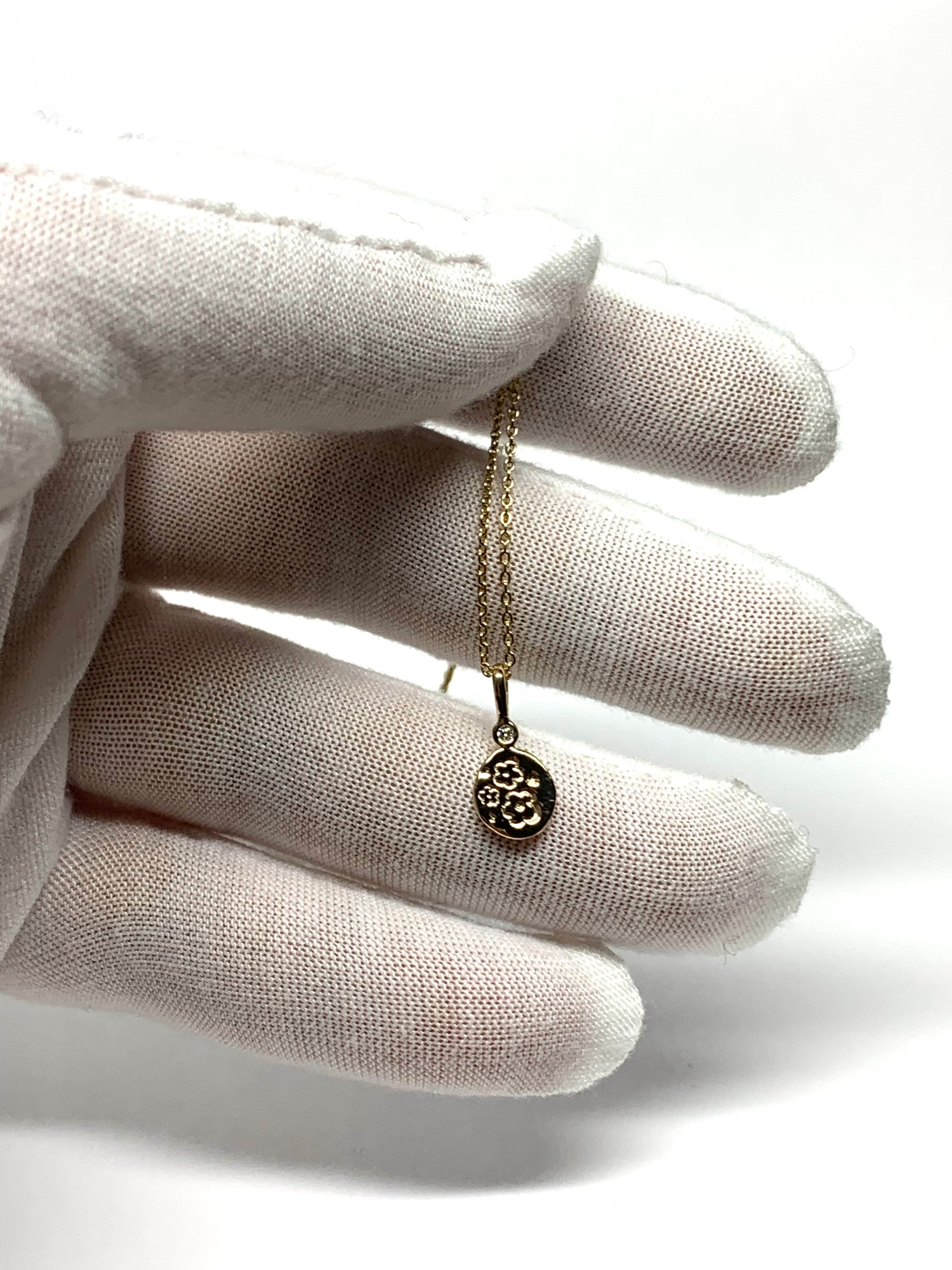 14K Solid Yellow Gold Nugget “Flowers” Mini Pendant, White Diamond, Tiny Charm