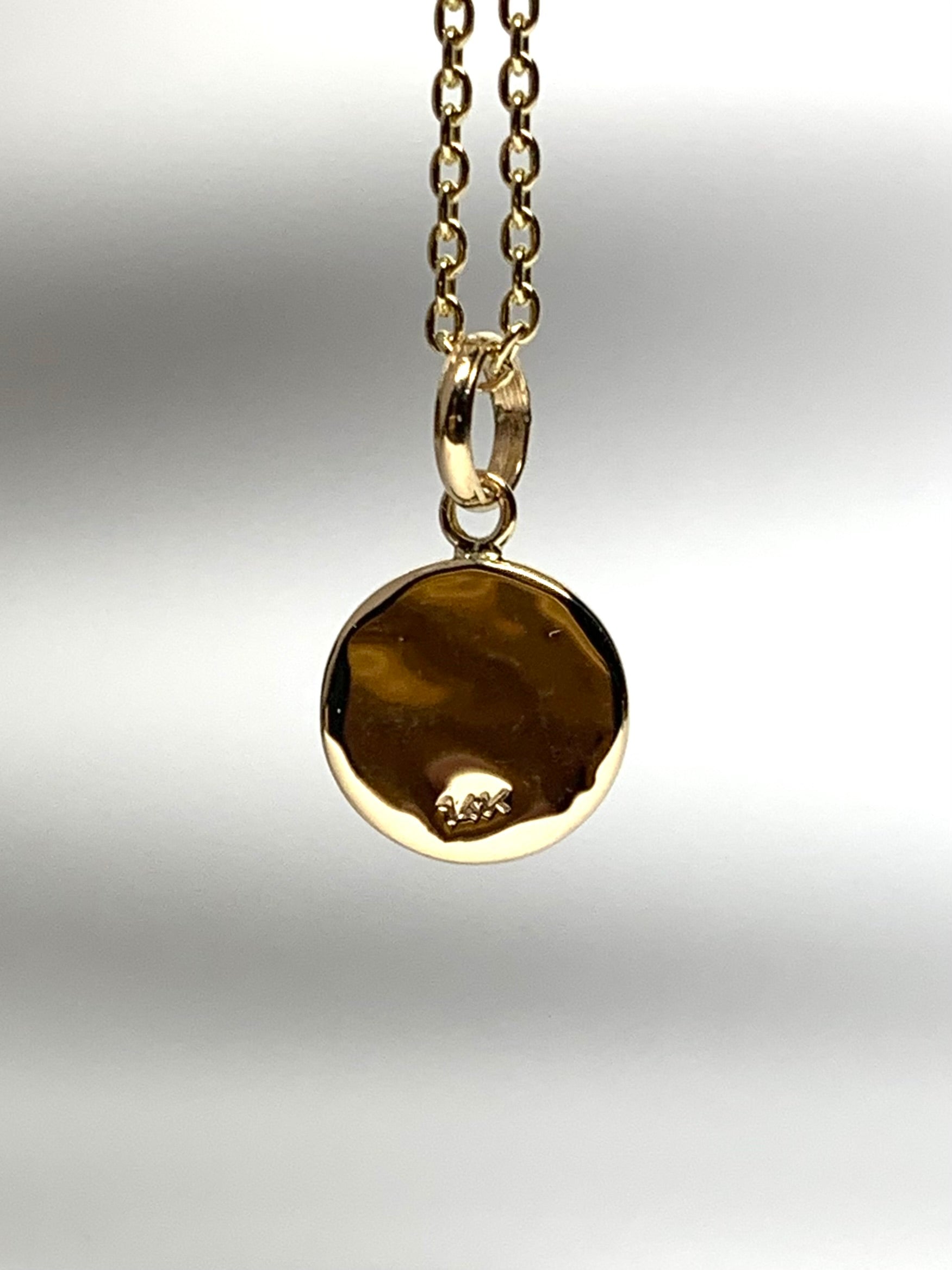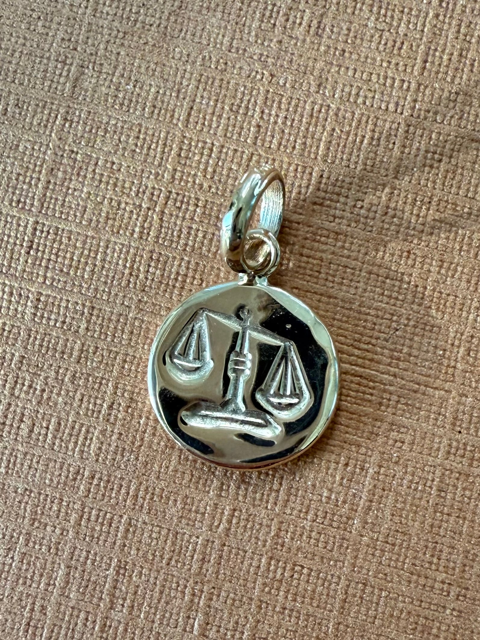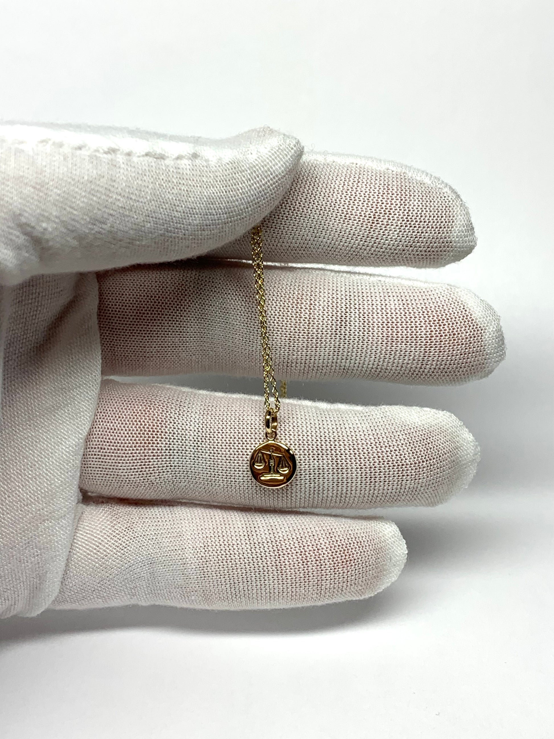 14k solid yellow gold nugget “Libra” mini pendant, tiny charm