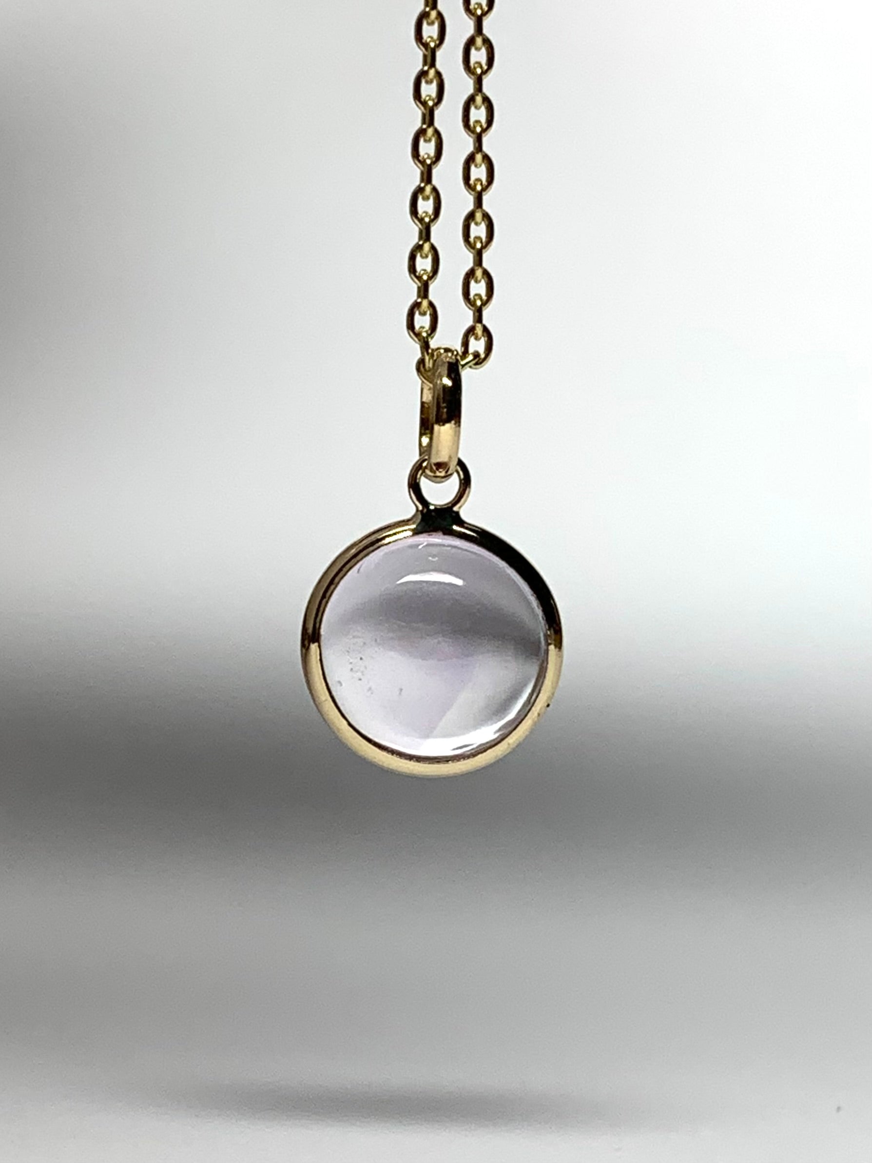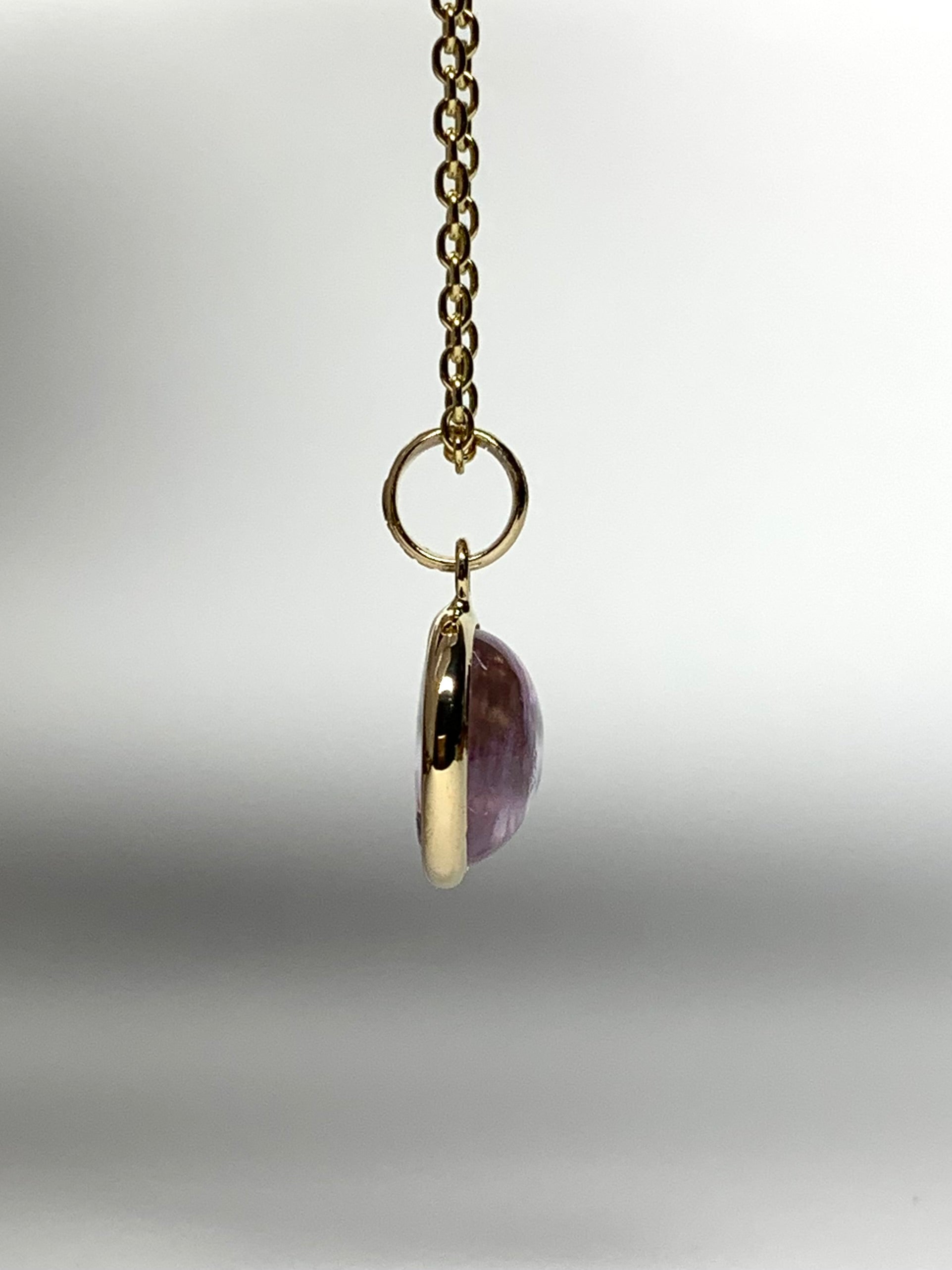 14k Solid Yellow Gold, Pink Amethyst Round Cabochon Mini Pendant