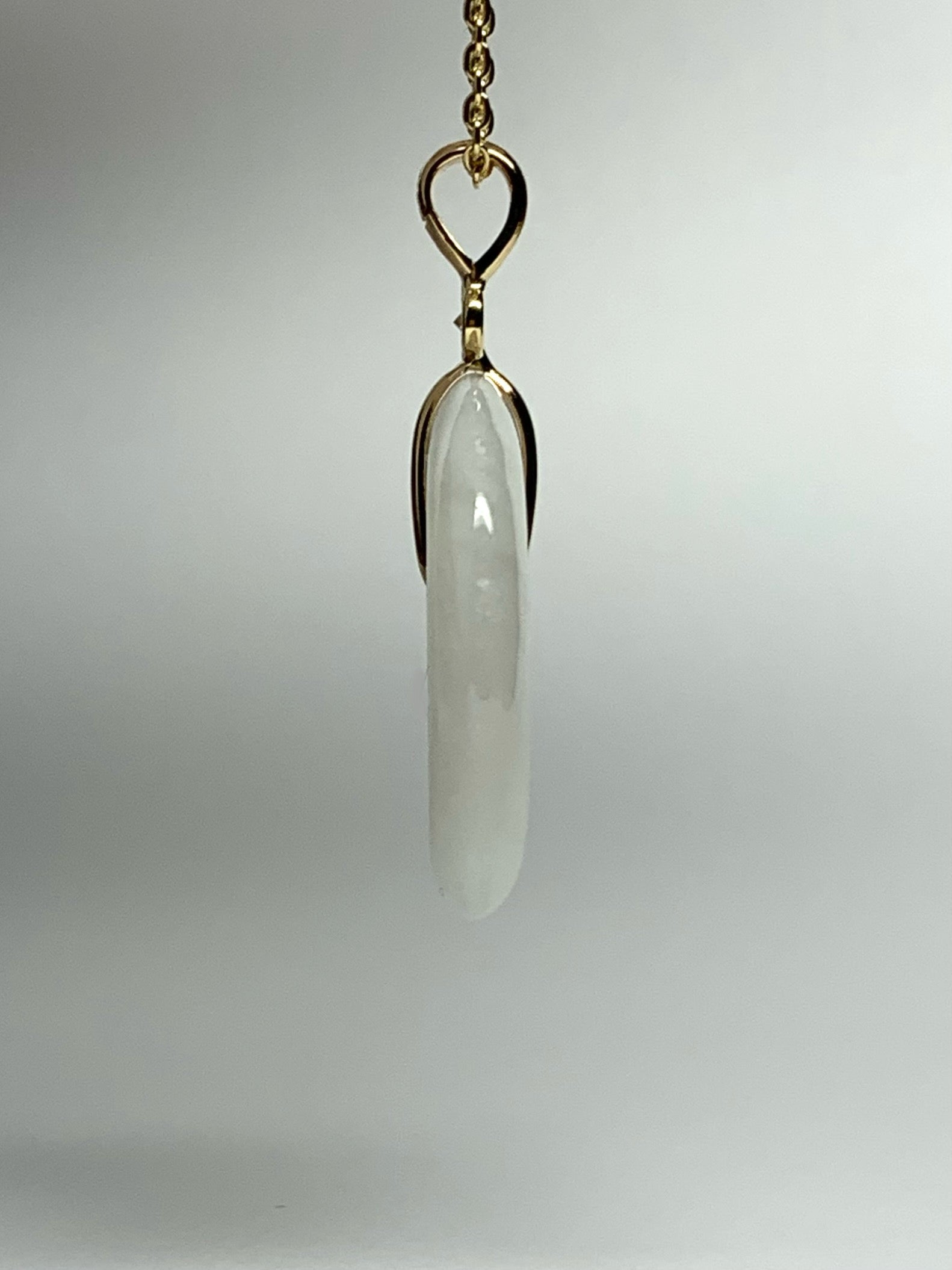 14k solid yellow gold, natural very pale green jade, natural white diamond pendant, small size