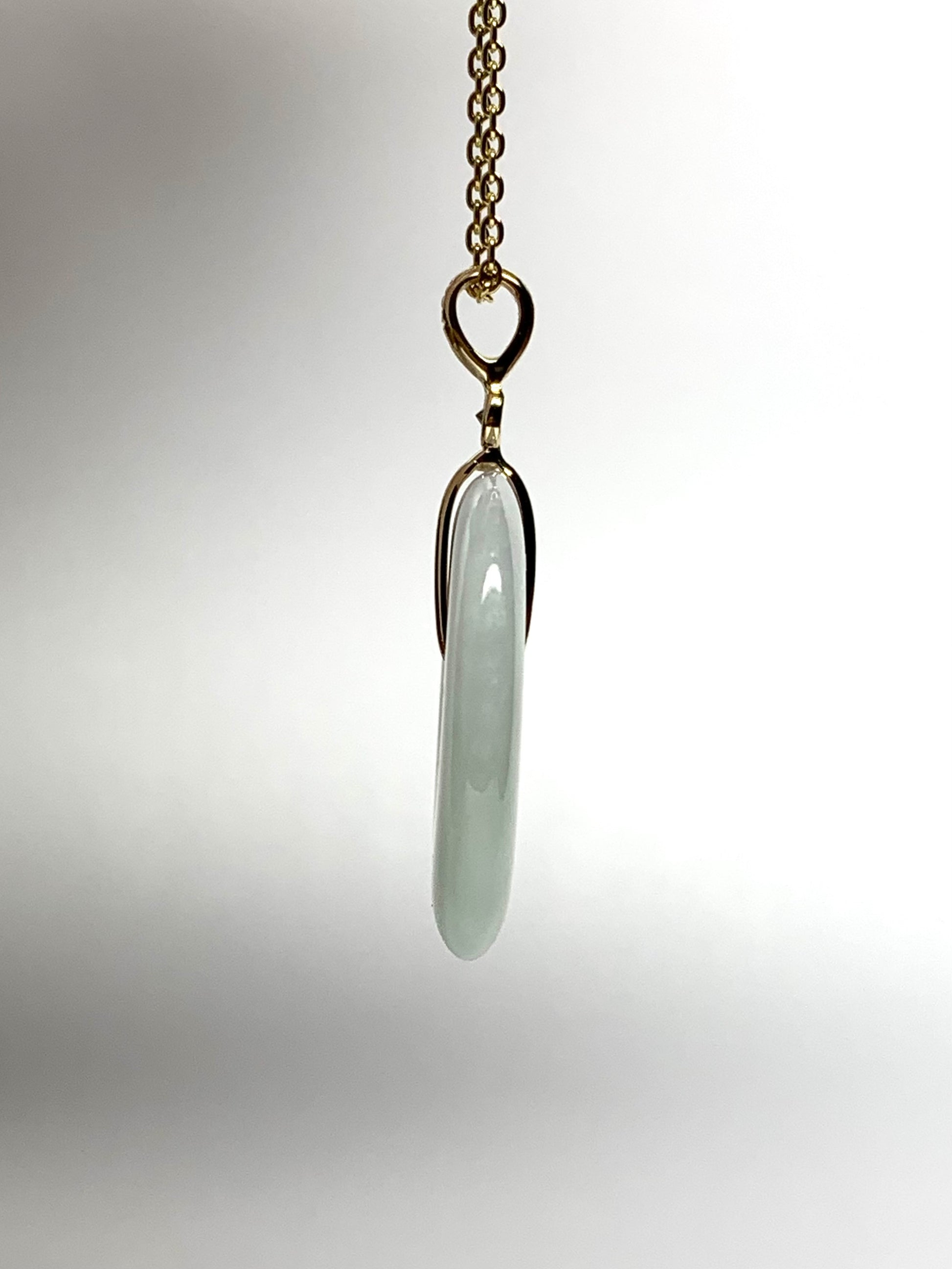 14k solid yellow gold, natural very pale green jade, natural white diamond pendant, small size