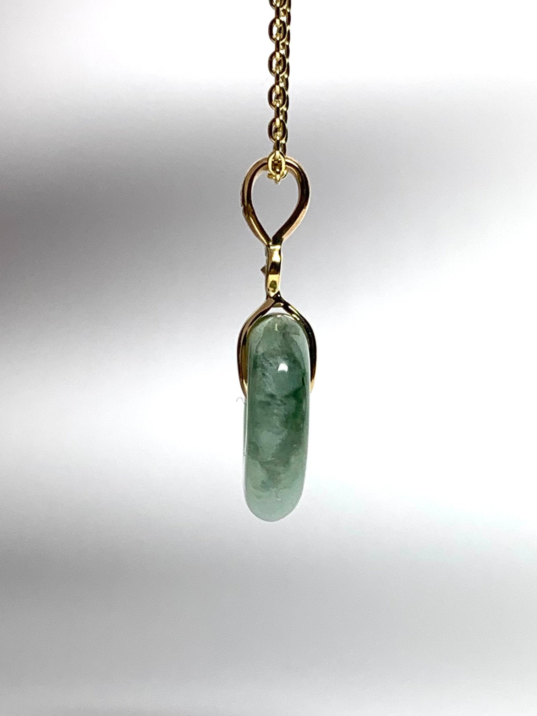 14k solid yellow gold, natural pale green jade, natural white diamond “Donut” pendant, mini size