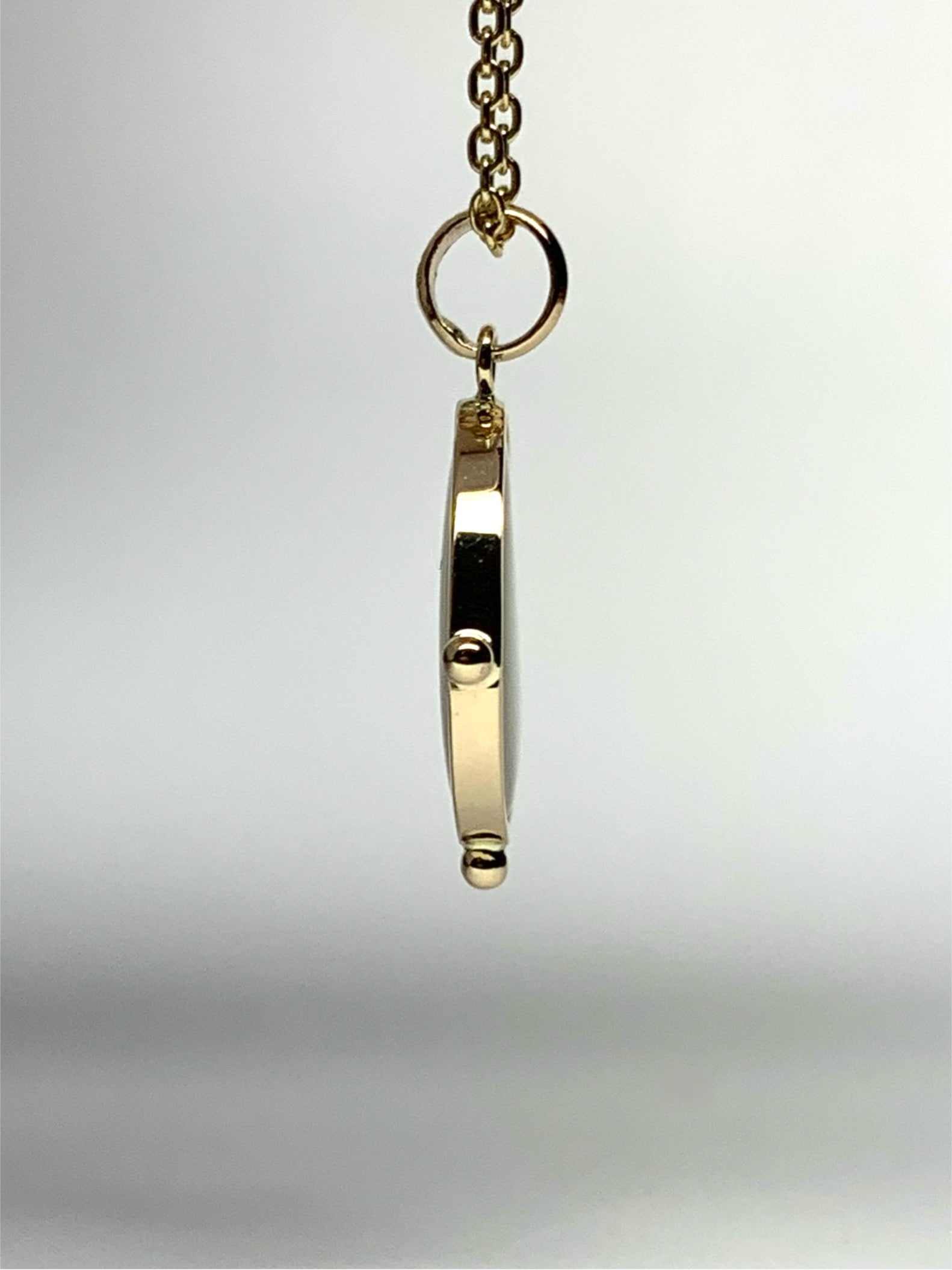 14k Solid Yellow Gold, White Moonstone Flat Cabochon Pendant, With Golden Dots