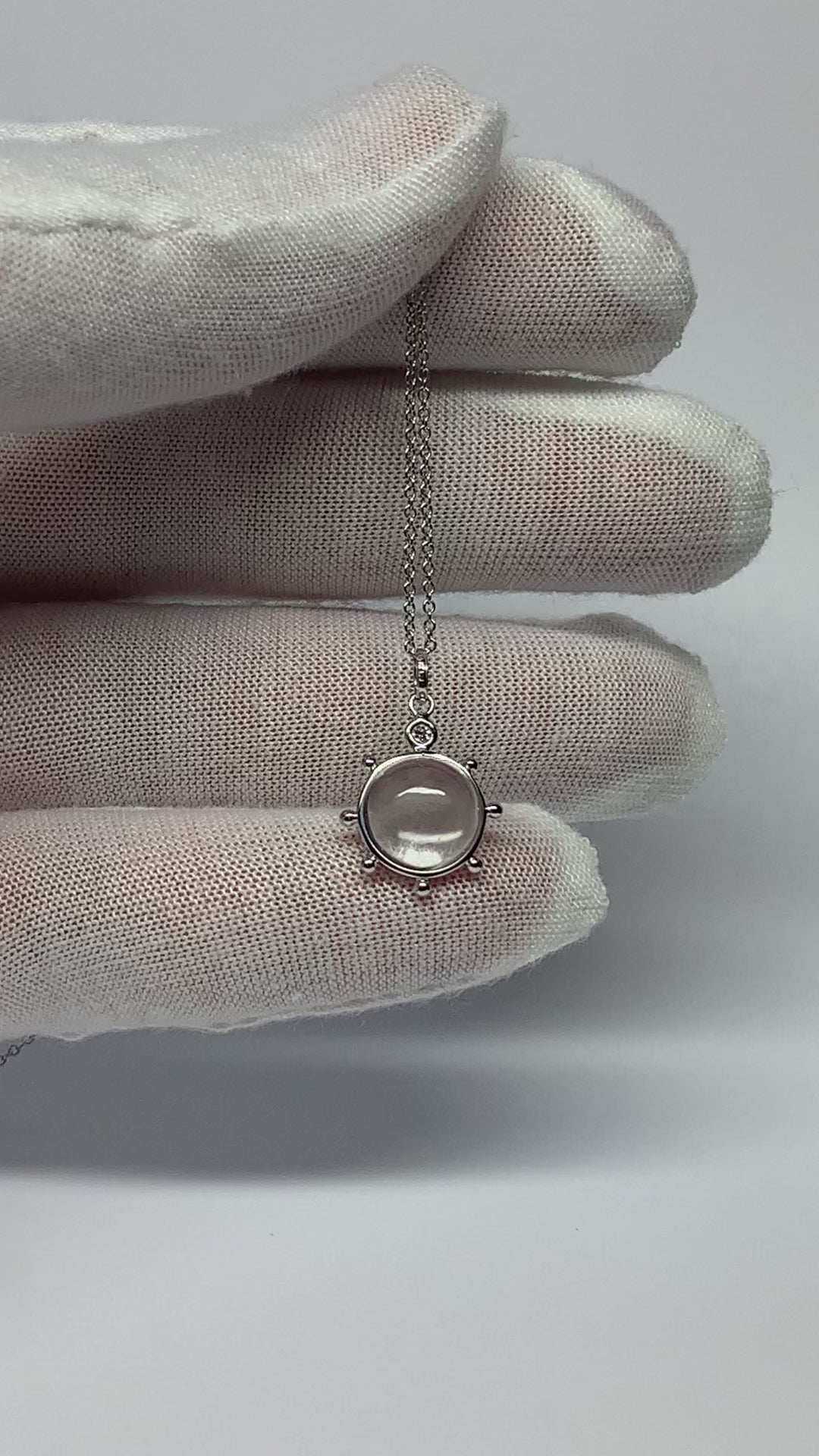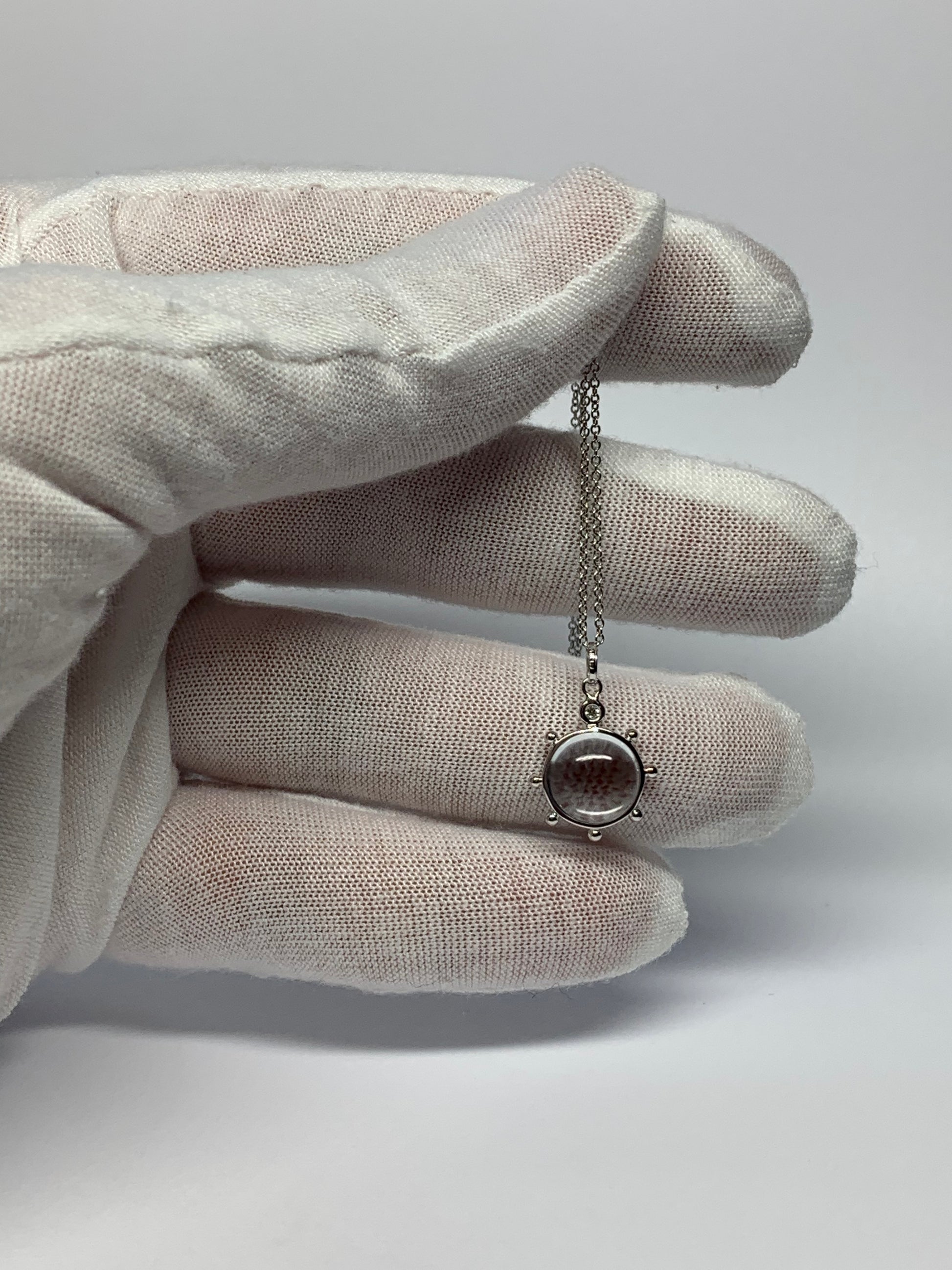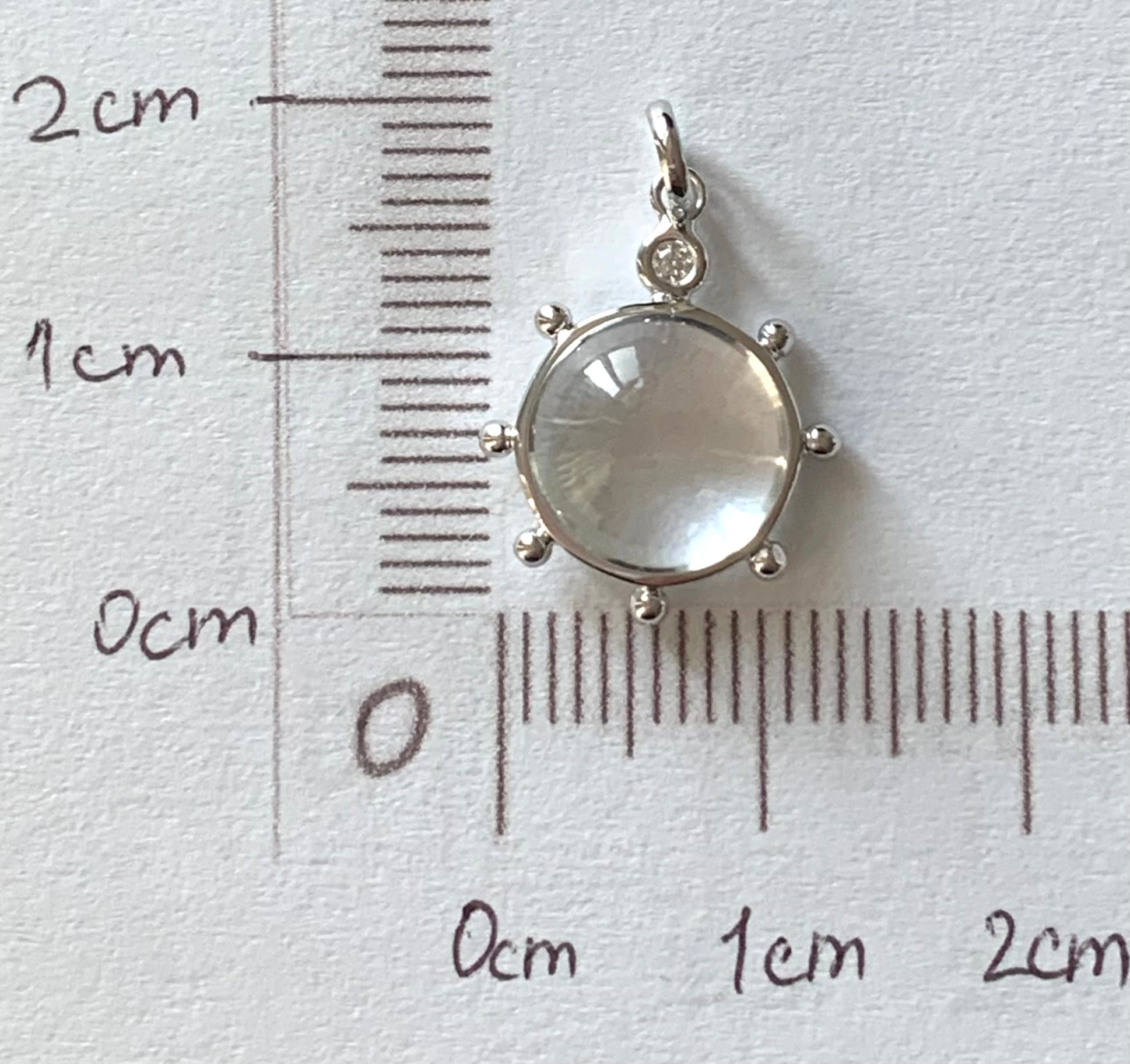 14k solid white gold, natural clear quartz, white diamond “Sun” pendant, small size