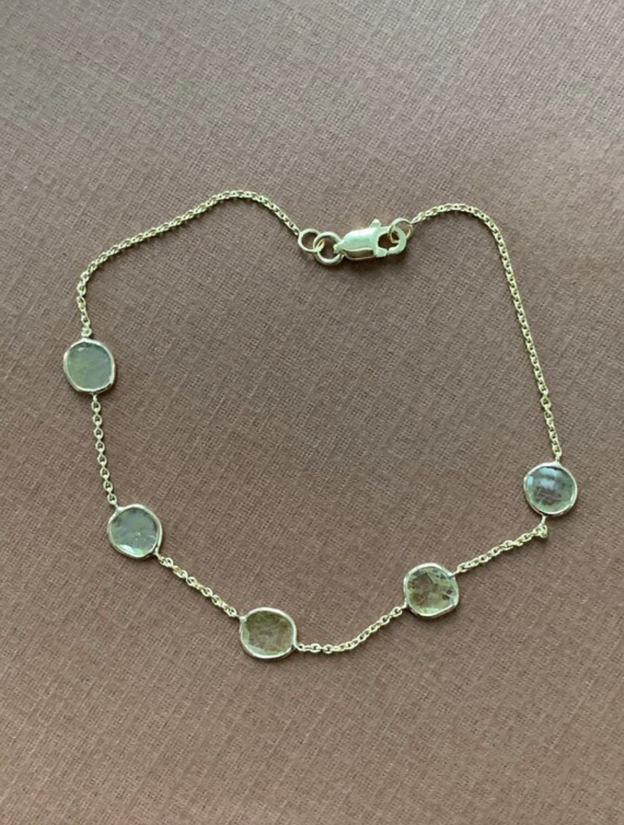 18k solid yellow gold and natural rose cut diamond slices bracelet